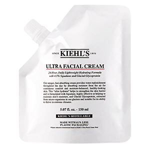 KIEHL'S Ultra Facial Cream 150ml Refill PouchThis ultra-hydrating, fast-absorbing cream delivers continuous moisture by drawing hydration from the air and strengthening the skin barrier with Squalane and Glacial Glycoprotein. In line with its sustainability goals, Kiehl’s is working to eliminate single-use virgin plastic by using refillable, reusable, or recycled packaging across all products.
